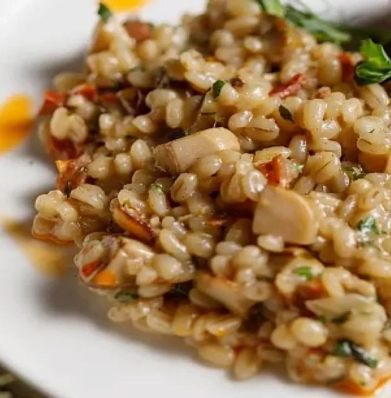 Картофель, белый лук, чеснок, белые грибы, оливковое масло, петрушка.